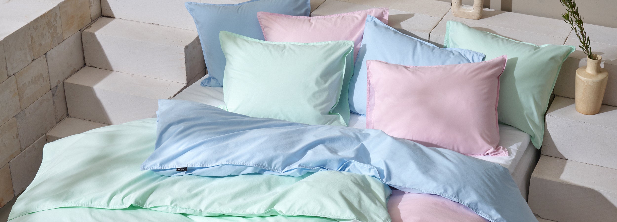 Our goal at Nanso is to make everyday life beautiful and comfortable. We believe that honest design and authentic materials create a sense of well-being and beauty in daily life. The selection includes duvet cover sets, bath towels, hand towels, cosmetic bags, and cushion covers for interior pillows.